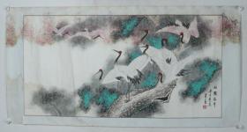 鲁杰 可合影 中书协,国家一级美术师【作品名称】鹤鹿同春 【作品尺寸】136*68cm 四尺 约8平尺 【作品作者】当代著名书画家鲁杰 ----收藏附带合影,视频,收藏证书
