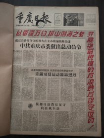 重庆日报1958年3月1日中共重庆市委发出总动员令,重钢双反运动,重刚即将开始全面扩建,钳工杨泽君,中国毛纺织厂,本市试行公费医疗管理改进方案,汪峰在全国人大民族委员会第五次扩大会议上作报告