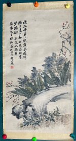 清末民国 绍兴书画家 赵士鸿花卉一幅 品如图(尺寸87.5×47cm)