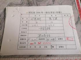 河北省保定市涞水县1996年一胎准生证..