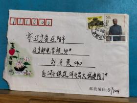 FP7-1498 2000 美术(荷花——真心祝福) 实寄封 贴普 长城 30分票、1998-25(4-1)刘少奇诞生一百周年 50分票 保定河北农业大学实寄辽阳 邮电学校