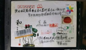编年封:正贴2010-27(6-1)十六届亚运会+1993-14(4-4)漆器高面值邮票,河北保定-陕西,挂号封,双戳清晰,裸封无信扎,2024.9.19,gyx22400