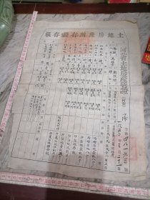 河北省土地房产所有证存根河北保定市涿县1950年
