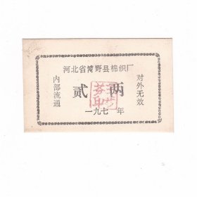 河北省保定市博野县棉织厂 二两粮票饭菜票