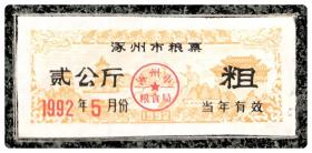 (河北保定市)涿州市粮票1992年5月份粗贰公斤