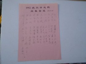 1952级同学返校欢聚签名 1996.10.28,刘文,李雪梅,朱学恒,李德兴,沈一平等 1张,保真包老。尺寸:30*21厘米详见书影 。放在右手边3号柜台里上至下第1层。2025.1.15整理