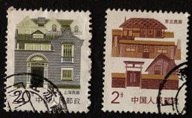中国邮票(建筑):普23 民居 信销 2枚