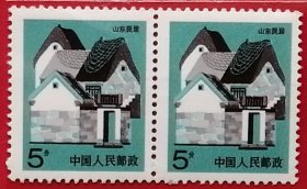 袁袁收藏 中国邮票 普27 1991年 山东民居 位移票 2-1 全新