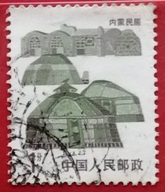 中国邮票,普23民居,1分,内蒙民居,一枚价
