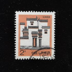 中国邮票 江西民居邮票建筑图案2元面值 信销1枚 如图