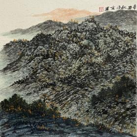 【中美协会员】【全店无假货无仿品无代笔全部保真】张文军,河北唐山人,中国美术家协会会员,任伯年艺术馆驻留艺术家,作品多次在全国美展中获奖,并被博物馆和美术馆收藏。斗方山水画小品14《秋山》(38×38CM)