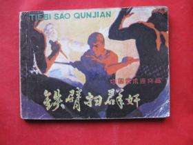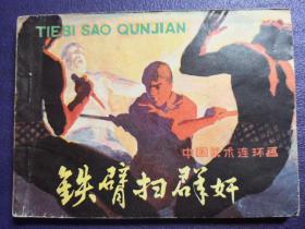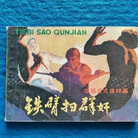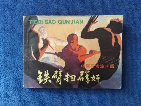 叶家斌老师彩色插图连环画《铁臂扫群奸》,岭南美术出版社出版,64开平装,1981年一版一印,印量118.7万册。北方藏书内页全品挺括板正雪白,封面封底如图微瑕,封底左下角有一个小折如图