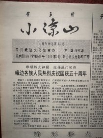 小凉山 1999年9月号 庆祝国庆50周年(四川峨边文化宫,少见) 吴代源《辩形释龙》,朱树棠向复春罗志君尹伯龄石平司徒波尔葛泽生李怀玉白丽等人作品