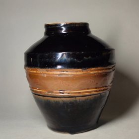 【老窑瓷,瑕疵品】黑釉刻划水波纹罐,包真包老