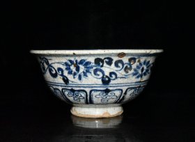 瓷器旧藏 元代青花开片鸳鸯戏水纹碗【9.5×19.8cm】