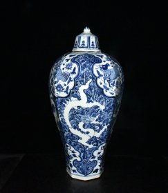 旧藏 元代博陵第青花雕刻海水龙凤纹八方梅瓶【51.5×27cm】