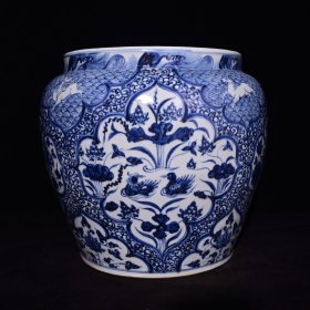 瓷器 元代青花鸳鸯戏水纹罐【2935cm】