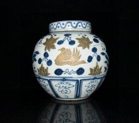 瓷器旧藏 元代青花鸳鸯戏水纹盖罐【18.5x20cm】