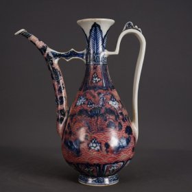 旧藏 元代青花釉里红鸳鸯戏水纹执壶 14*7*18厘米