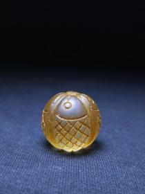 汉代千年老白水晶雕鱼古珠