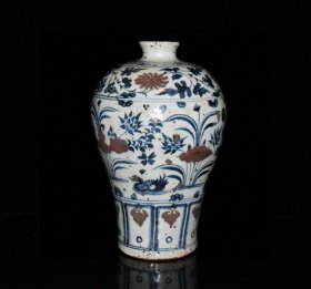 瓷器 元代青花釉里红鸳鸯戏水梅瓶【29.2x18.5cm】