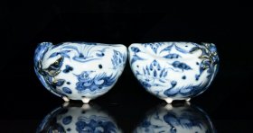 瓷器旧藏 元代青花鸳鸯戏水纹水滴一对【6.3x10cm】
