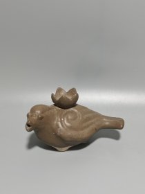 宋代磁州窑水鸟砚滴摆件,长15cm,宽8.3cm,高8.5cm。造型生动,背部有莲花装饰,张嘴空心,做工精致。成色完好,是收藏的不错选择。