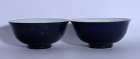 旧藏 元内府款祭蓝釉五彩鸳鸯戏水纹碗一对 高7.3×16厘米