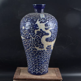 元蓝釉海水龙纹梅瓶