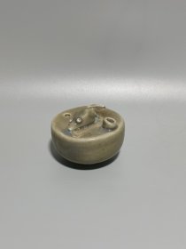 宋代钧窑老鼠水滴,直径7.2cm,高5.3cm。釉色温润,呈青灰色,老鼠造型生动可爱,栩栩如生。底部有小孔可做水滴使用,适合文房用品。品相完好,包浆自然,是收藏的好选择。
