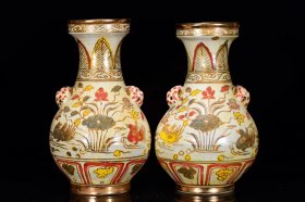 瓷器 元五彩多字款鸳鸯戏水纹描金虎头瓶 31*18厘米
