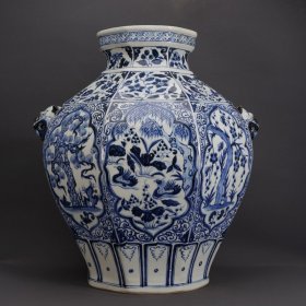 旧藏 元青花开窗鸳鸯戏水松竹梅纹双耳罐 36*39厘米