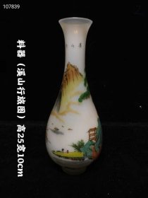 251_收藏精品 《乾隆年制》款料器玉壶春瓶 绘图 山水人物图案 寓意吉祥 器型端庄优雅 厚重圆润通透 包浆自然 色彩丰富 品相完好 收藏佳品!