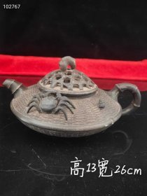 83_钱菊芳精品蟹篓竹编手工紫砂壶,纯手工打造,磨损自然,刀刻极度深邃,密封性良好,散热慢,壶嘴出水流畅,断水利落,造型周正古朴,敦厚庄重,品相完整,成色如图