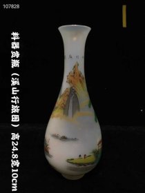245_收藏精品 《乾隆年制》款料器玉壶春瓶 绘图 山水人物图案 寓意吉祥 器型端庄优雅 厚重圆润通透 包浆自然 色彩丰富 品相完好 收藏佳品!