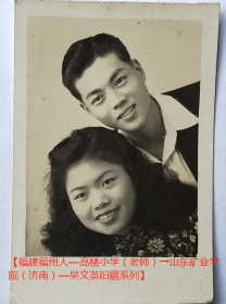 老照片:美女情侣—林英俊、游淑云,1950年5月7日(赠)文英同学。看背题。【福建福州人—高楼小学(老师)→山东矿业学院(济南)—吴文英旧藏系列】