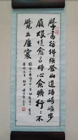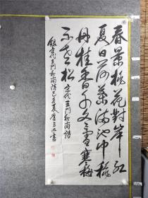 B13521号书法 宋代云门和尚《颂》 138×69cm 作者:唐立海,字春青,号东庄令子。1940年生于辽宁省庄河市青堆镇。书法大专。在营口市工商局退休。毕业于无锡书法艺专,系营口市、辽宁省职工书协会员,中国老年书画学会会员, 春景桃花对岸红,夏日荷花满池中。秋菊丹桂香千里,冬雪寒梅伴老松。