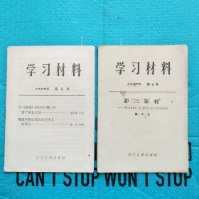 学习材料 1966年 第7号 第8号 评 三家村《前线》《北京日报》邓拓 合售