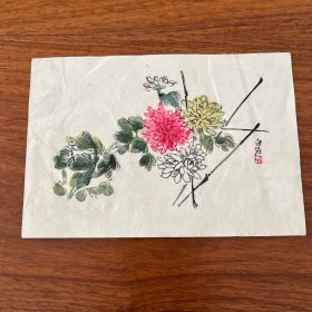 齐白石 秋菊 七十年代朵云轩木版水印 对折页版画