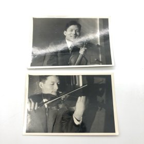中国第一代钢琴家、曾任中央乐团首席钢琴巫漪丽(1931-2019)旧藏,曾经的爱人著名小提琴演奏家、中央乐团小提琴首席杨秉荪(1929-2017)小提琴演奏照片两枚
