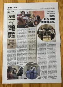 上海青年作家纪实文学第一时间--写在春天里的上海报告何建明战地日记许丽莉老兵新岗王萌萌这里的防疫静悄悄寒烈上海纪实电子期刊第一时间上海爱乐乐团团长孙红报纸报道1页 彩页 2020年4月11日