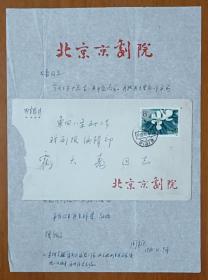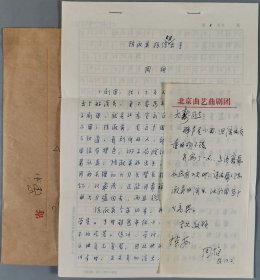 霍-大-寿、萧-曼夫妇旧藏:著名戏曲剧评家、戏剧活动家 周桓 1983年致霍-大-寿信札一通一页 及其手稿复写件《陈淑英很练大刀出手》一份四页 附手递封一枚 HXTX343626