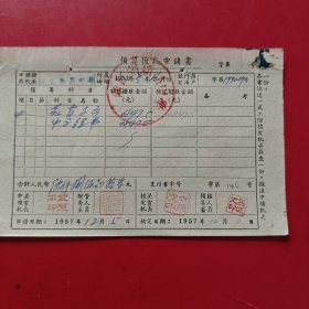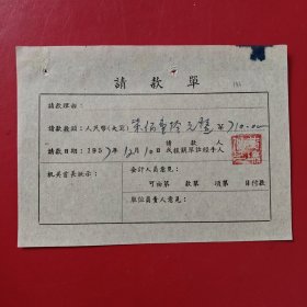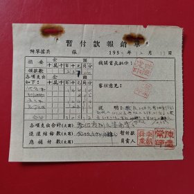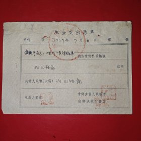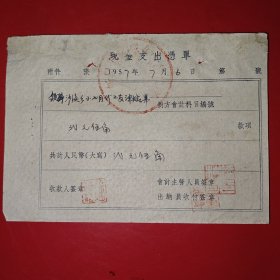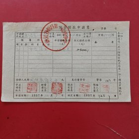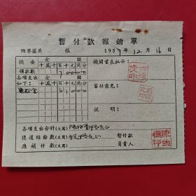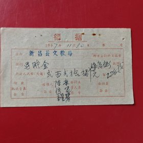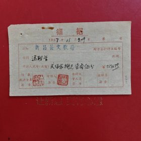 1957年12月15日,知识青年进修班公什费包干领据,浙江省绍兴市新昌县文教局,新昌县孟家圩乡中心小学。(生日票据,文化教育2类票据)。(85-6)