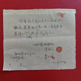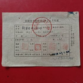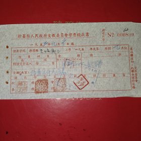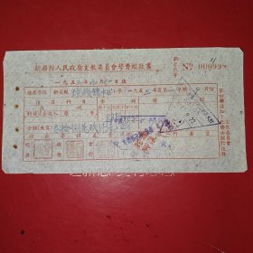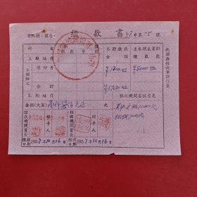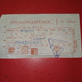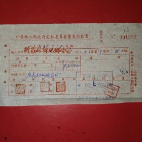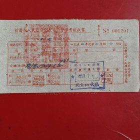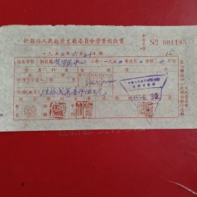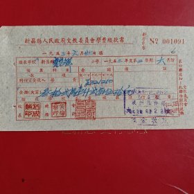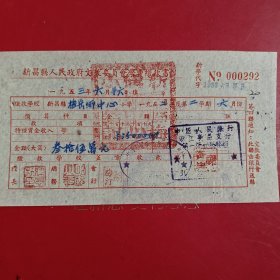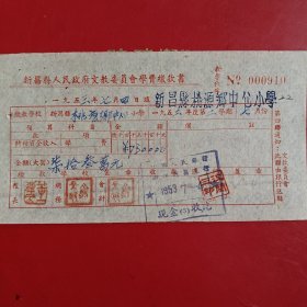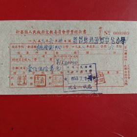 1953年9月21日,新昌县人民政府文教委员会学费缴款书,浙江省绍兴市新昌县镜岭镇中心小学,红章漂亮。(生日票据,文化教育2类票据)。(76-10)