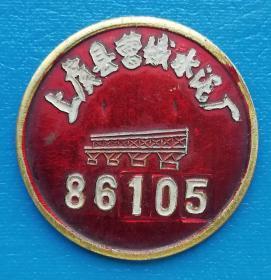 上虞县曹娥水泥厂证章——八十年代徽章校徽证章奖章纪念章类。 今上虞市曹娥水泥预制品厂,地址浙江省绍兴市上虞区曹娥街道下沙社区。上虞区辖3个街道、15个镇、3个乡:百官街道、曹娥街道、东关街道;道墟镇、上浦镇、汤浦镇、章镇镇、下管镇、丰惠镇、永和镇、梁湖街道、驿亭镇、崧厦镇、沥海镇、小越街道、谢塘镇、长塘镇、盖北镇;岭南乡、陈溪乡、丁宅乡。
