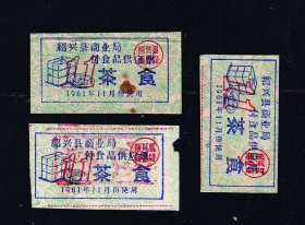 浙江省绍兴市1961年《茶食票》三枚(相同)合计价:微型小票(17-18)。