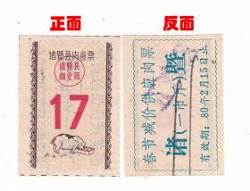 浙江省绍兴市诸暨市肉食票 正反两种肉票 非粮票 小猪图案 少见