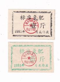 浙江省绍兴市83年氮肥票 2枚 绍兴市生活票非粮票