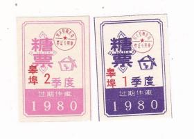 浙江省绍兴市80年糖票 2枚 绍兴市生活票证非粮票