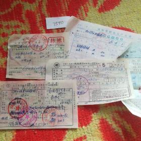 历史文献1982年浙江省绍兴市双梅知青袜厂发票等五张合售